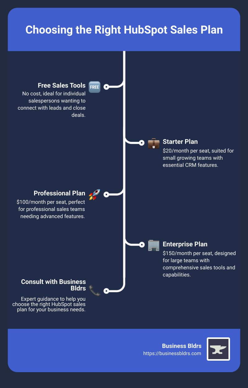 Choosing the right HubSpot Sales plan can significantly impact your sales efficiency and revenue growth. By understanding your specific needs and leveraging the right features, you can make an informed decision that sets your team up for success. Let Business Bldrs help you make the most of your HubSpot investment. Visit our HubSpot Business Growth Tools page to get started today.